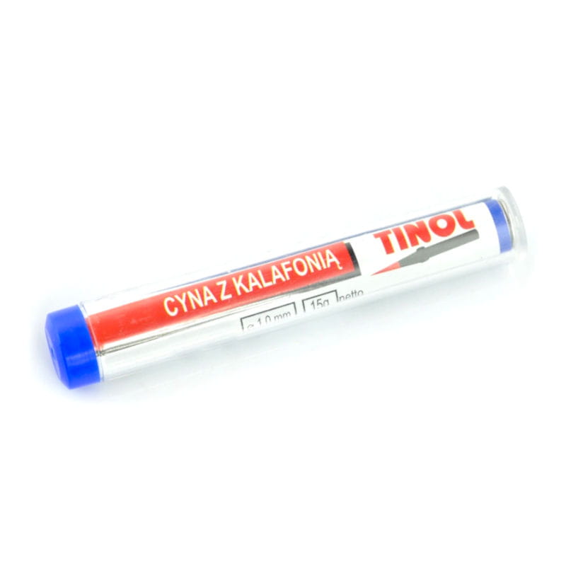 Niezbędny element procesu lutowania - Cyna z kalafonią używana w pracach naprawczych jako spoiwo lutownicze. Pozwala na proste i skuteczne lutowanie elementów elektronicznych. Cyna umieszczona jest w specjalnej fiolce ułatwiającej dozowanie spoiwa. Grubość 1mm, waga 15g.