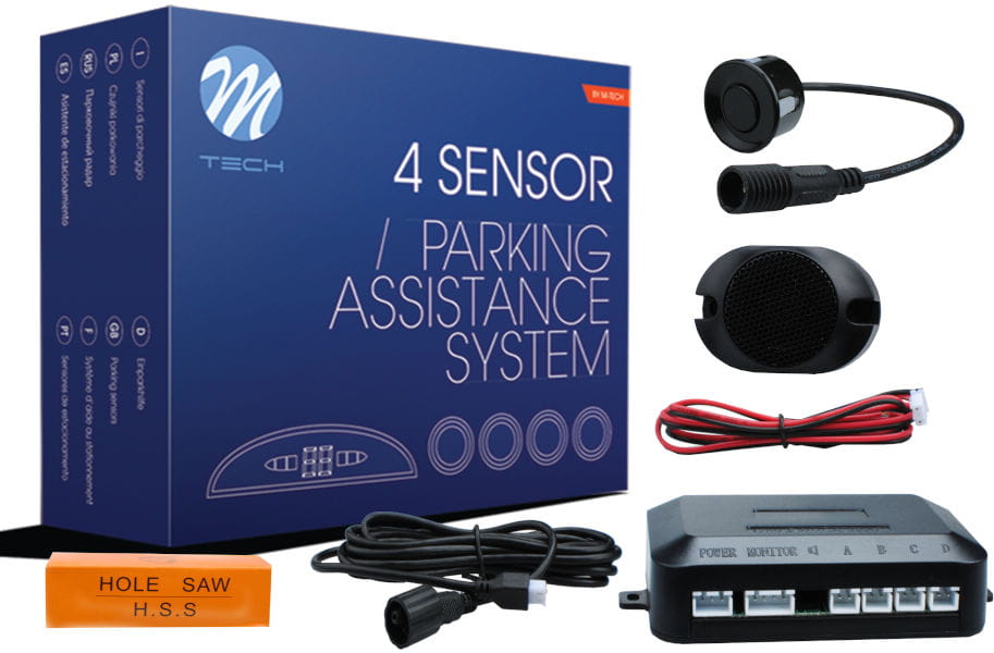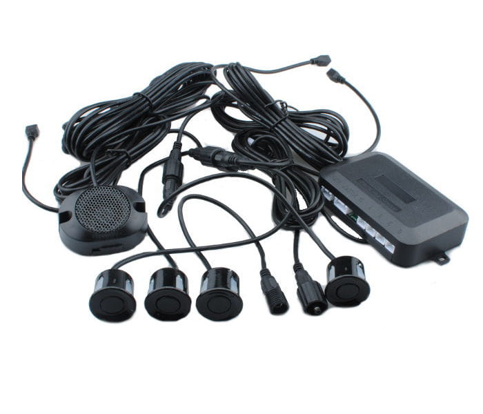 Kompletny system wspomagający kierowcę podczas manewru cofania, w którego skład wchodzą 4 czujniki, głośnik oraz komputer sterujący, a także wszelkie niezbędne akcesoria montażowe. Każdy czujnik posiada konektor, dzięki któremu szybko możemy odłączyć go od reszty zestawu.