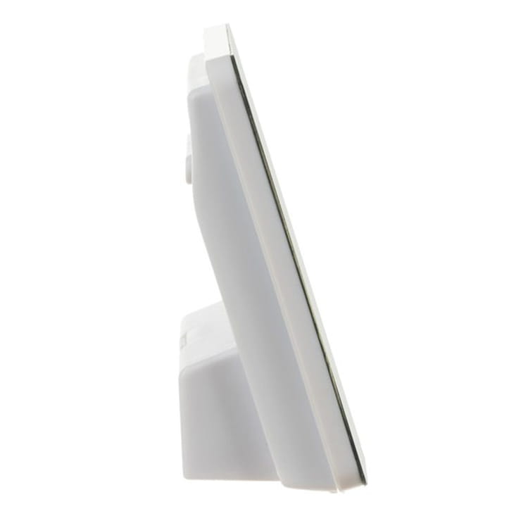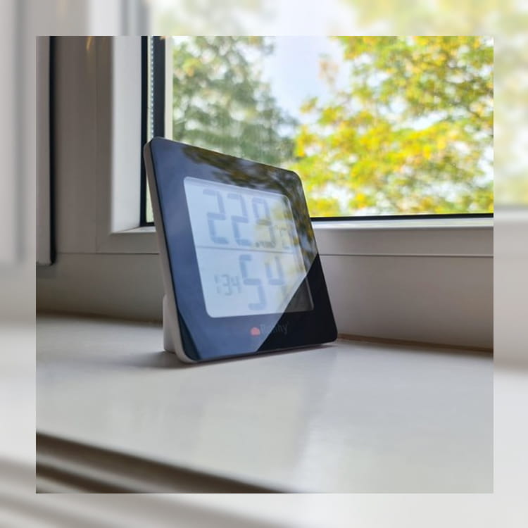 Mała elegancka stacja pogody wyświetlająca aktualną temperaturę otoczenia, jak i poziom wilgotności, dodatkowo posiada ona wbudowany zegar z alarmem, który posiada głośny dzwonek. Ekran urządzenia można również podświetlić, naciskając przycisk znajdujący się z tyłu obudowy (SNOOZE * LIGHT).