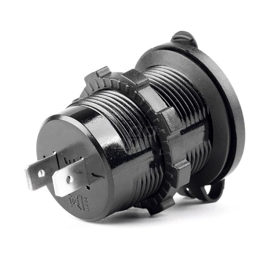 Wyposażone w 2 porty USB gniazdo zapalniczki samochodowej przeznaczone do samodzielnego montażu w instalacjach elektrycznych 12V i 24V. Porty USB oferują natężenie prądu kolejno 2,1A i 1A.