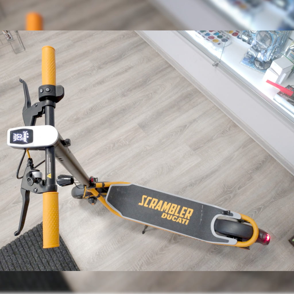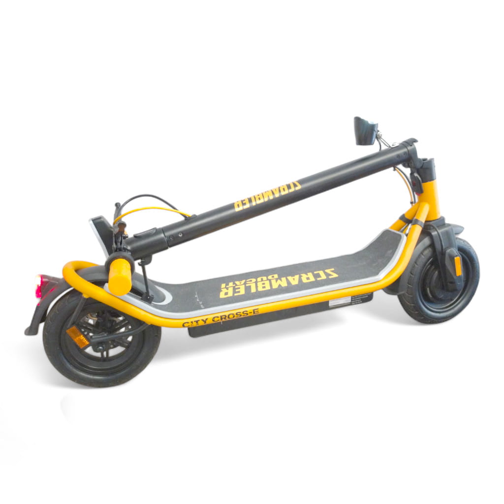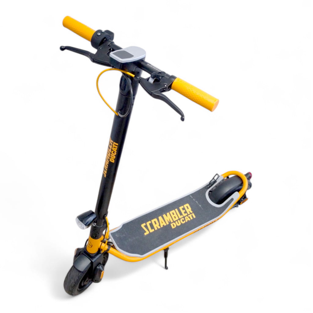 Zainspirowana kultowym stylem Scrambler Ducati, City Cross-E łączy w sobie klasyczny design z nowoczesną technologią, zapewniając płynną jazdę po miejskich ulicach. Hulajnoga posiada dwa niezależne systemy hamowania (tarczowy z tyłu, elektroniczny z przodu).
