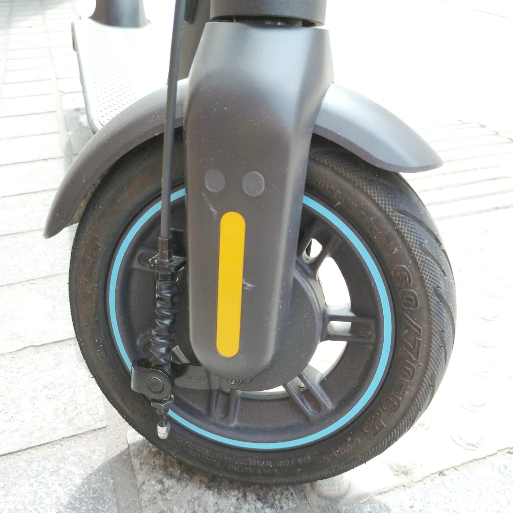 Dzięki 10-calowym oponom pneumatycznym, które zapewniają dodatkową warstwę żelową dla mniejszego ryzyka przebicia, komfort jazdy jest na najwyższym poziomie, nawet na nierównych nawierzchniach. Wbudowane przednie i tylne światła LED oraz odblaski E&Z-MARK gwarantują widoczność i bezpieczeństwo w różnych warunkach oświetleniowych.