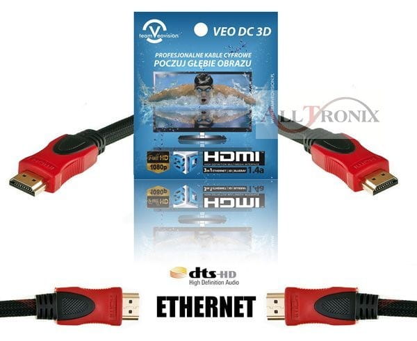 High Definition Multimedia Interface (HDMI) - Wysokiej jakości kabel HDMI 3D przeznaczony do transmisji audio-video. Kabel ten pozwala na cyfrową transmisję danych bez jakichkolwiek strat jakości dźwięku czy też obrazu. Standard HDMI jest obecnie najbardziej popularnym i najlepszym powszechnie dostępnym na rynku sposobem na cyfrowe przekazywanie sygnału telewizyjnego.