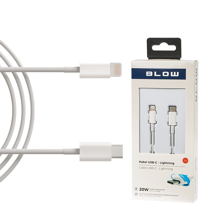 Wysokiej jakości kabel USB do urządzeń marki Apple: iPhone, iPad, iPod - umożliwia ładowanie i przesyłanie danych. Z jednej strony wtyk USB typ C z drugiej iPhone Lightning. Najwyższa jakość dla synchronizacji, szybkiego ładowania i przesyłania danych. Elegancki biały przewód o długości 1m.