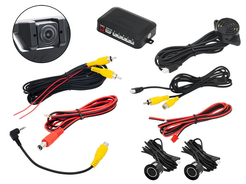Komplet samochodowy wspomagający cofania i parkowanie pojazdem w skład którego wchodzi: kamera cofania oraz sensory parkowania wbudowane w ramkę tablicy rejestracyjnej, centralka, brzęczyk oraz niezbędne okablowanie. W przypadku zbliżania się do przeszkody emitowany jest narastający dźwięk przez dołączony brzęczek. Kamera cofania wymaga osobnego ekranu lub radia z monitorem, które nie wchodzą w skład kompletu.