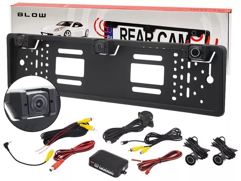 Zestaw kamery i czujników parkowania w ramce rejestracji