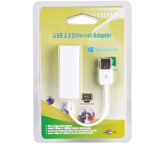 Zewnętrzna karta umożliwiająca podłączenie przewodu sieciowego z wtyczką RJ45 do portu USB 2.0. Obsługuje prędkości przesyłania danych 10 i 100Mbps. Karta nie potrzebuje dodatkowego zasilania.