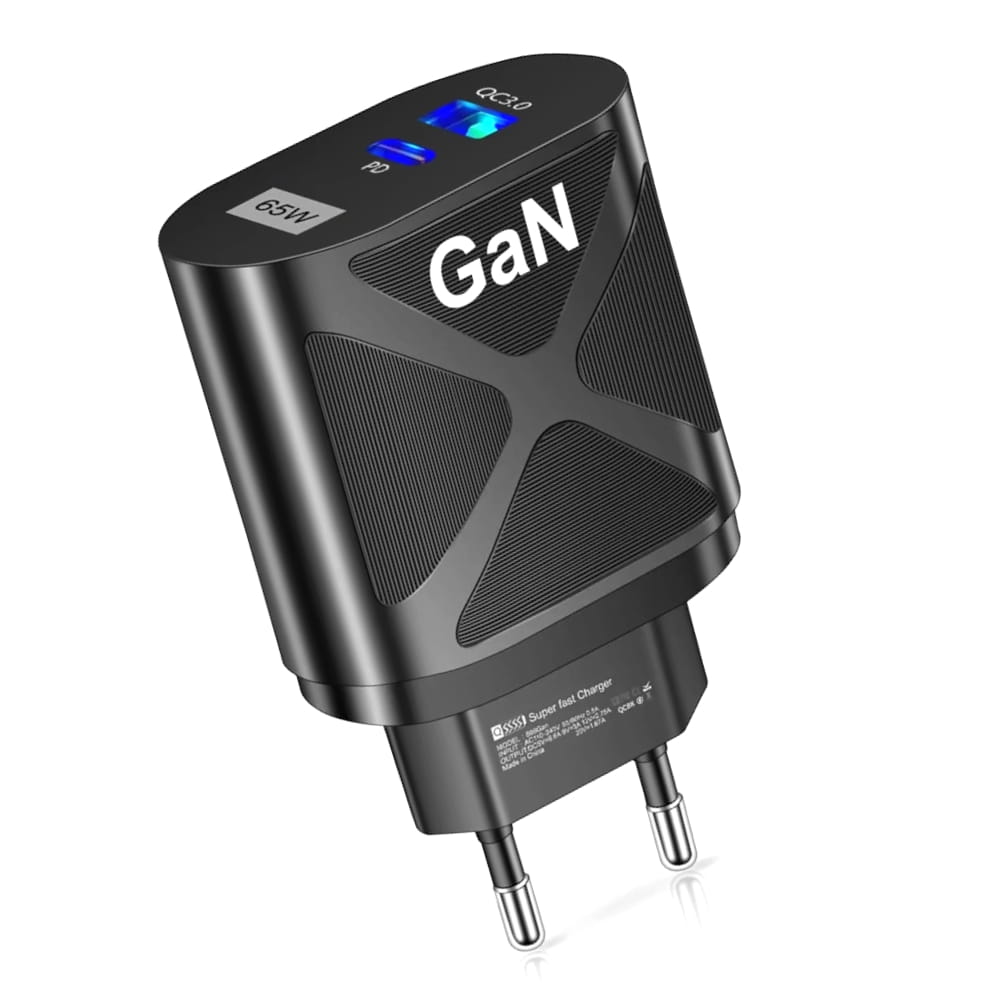Odkryj szybkie ładowanie z ładowarką GaN 65W. Kompaktowa, wydajna i bezpieczna ładowarka z portami USB-C i USB-A, idealna do domu, biura i podróży.