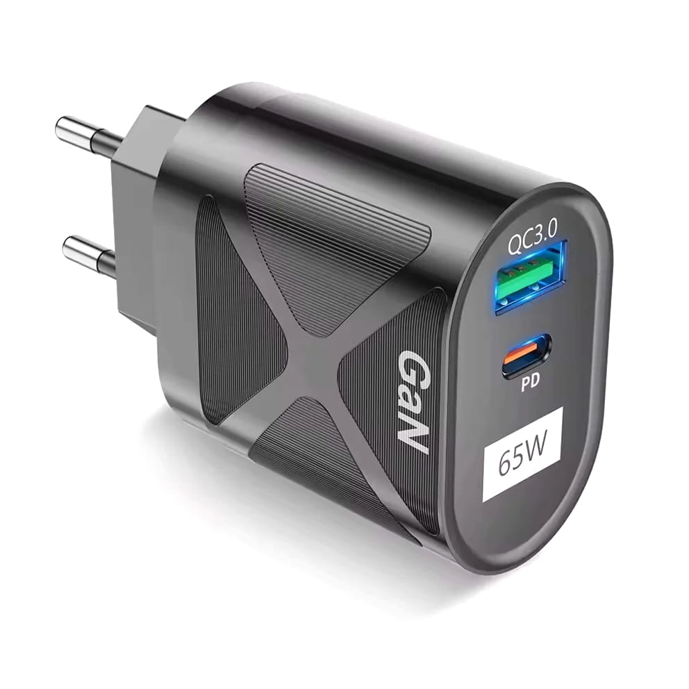 Ładowarka GaN 65W gniazdo USB-C PD + USB-A QC 3.0