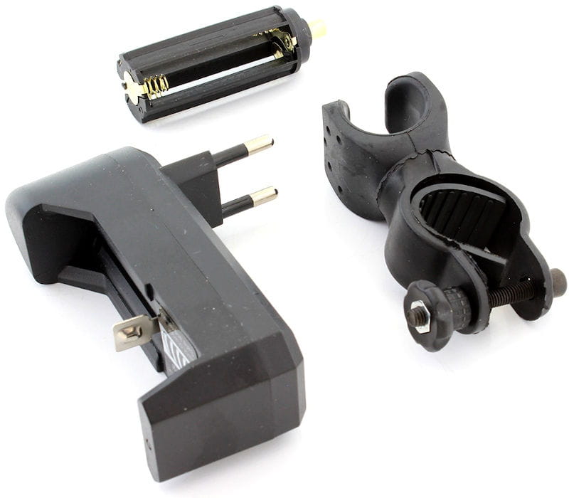 Latarka LED wyposażona w bardzo mocną diodą główną CREE XP-E Q5 oraz boczną diodą COB. Urządzenie posiada aż 6 różnych trybów świecenia. Dodatkowo produkt cechuje się klasą wodoodporności IPX4, zasięgiem aż do 300m oraz funkcję zoom. Zasilana akumulatorkiem 18650 lub 3 x bateria AAA. W komplecie z uchwytem na rower, ładowarką sieciową do akumulatora, akumulatorkiem oraz adapterem na trzy paluszki AAA. Wszystko to zamknięte w zielonym, eleganckim opakowaniu.