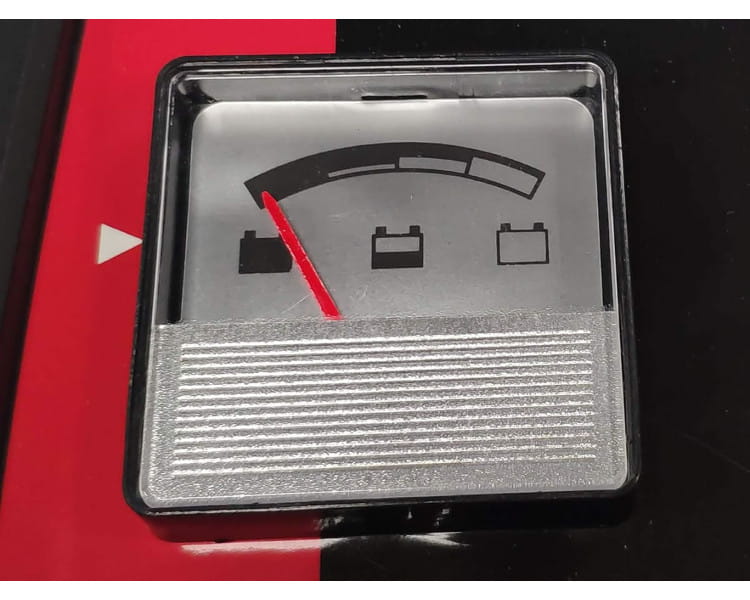 Prostownik posiada wbudowaną ochronę przeciążeniową oraz przepięciową zabezpieczoną wymiennym bezpiecznikiem. Po zakończeniu ładowania, gdy wskazówka amperomierza wychyli się maksymalnie na pole w kolorze czarnym wskazując naładowany akumulator należy odłączyć klemy od akumulatora.