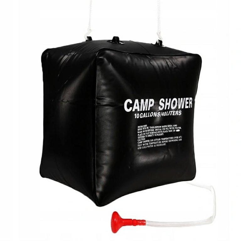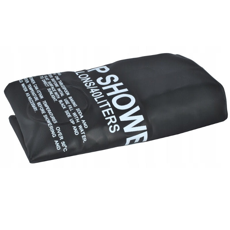 Zawieszany prysznic kempingowy o pojemności 40 litrów. Przenośny zbiornik na wodę, do której podgrzania wystarczą promienie słoneczne. Dzięki czarnemu tworzywu, prysznic dobrze pochłania światło, a woda szybko się nagrzewa. Worek możemy złożyć do bardzo kompaktowych rozmiarów. Prysznic posiada słuchawkę z wężykiem i sznurki z haczykami do zawieszenia.