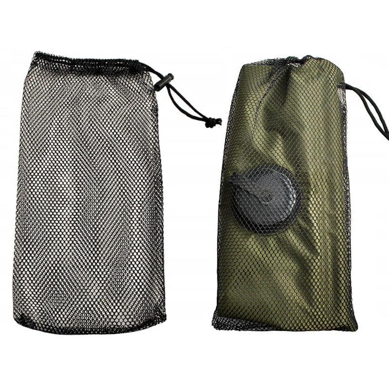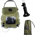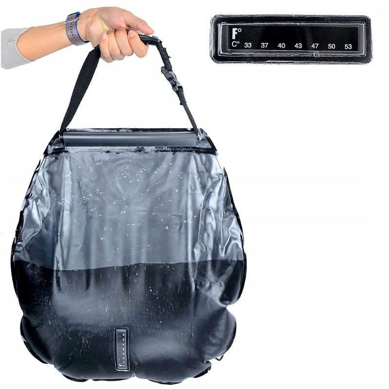 Zawieszany prysznic kempingowy o pojemności 20 litrów. Przenośny zbiornik na wodę, do której podgrzania wystarczą promienie słoneczne. Dzięki specjalnemu tworzywu, prysznic dobrze pochłania światło, a woda szybko się nagrzewa. Z tyłu wszyto termometr. Worek możemy złożyć do bardzo kompaktowych rozmiarów. Prysznic posiada słuchawkę z wężykiem i wygodną zapinaną rączkę do zawieszenia.