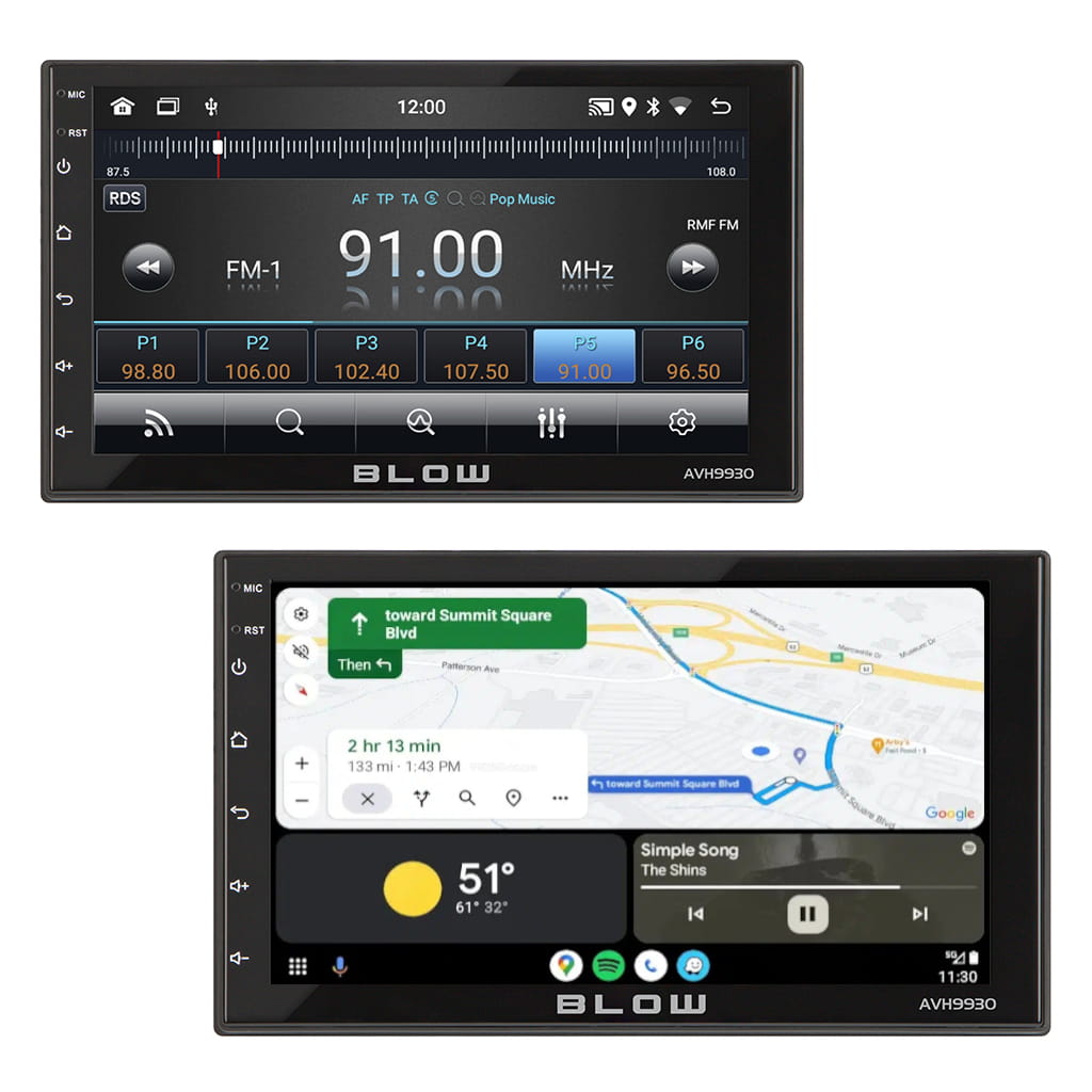 Odkryj Radio BLOW AVH-9930 2DIN z Androidem 12, 7-calowym wyświetlaczem dotykowym, GPS, Bluetooth i Mirror Link. Przekształć swoje auto w nowoczesne centrum multimedialne.