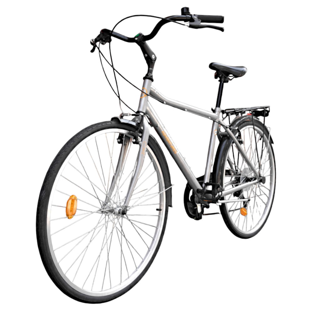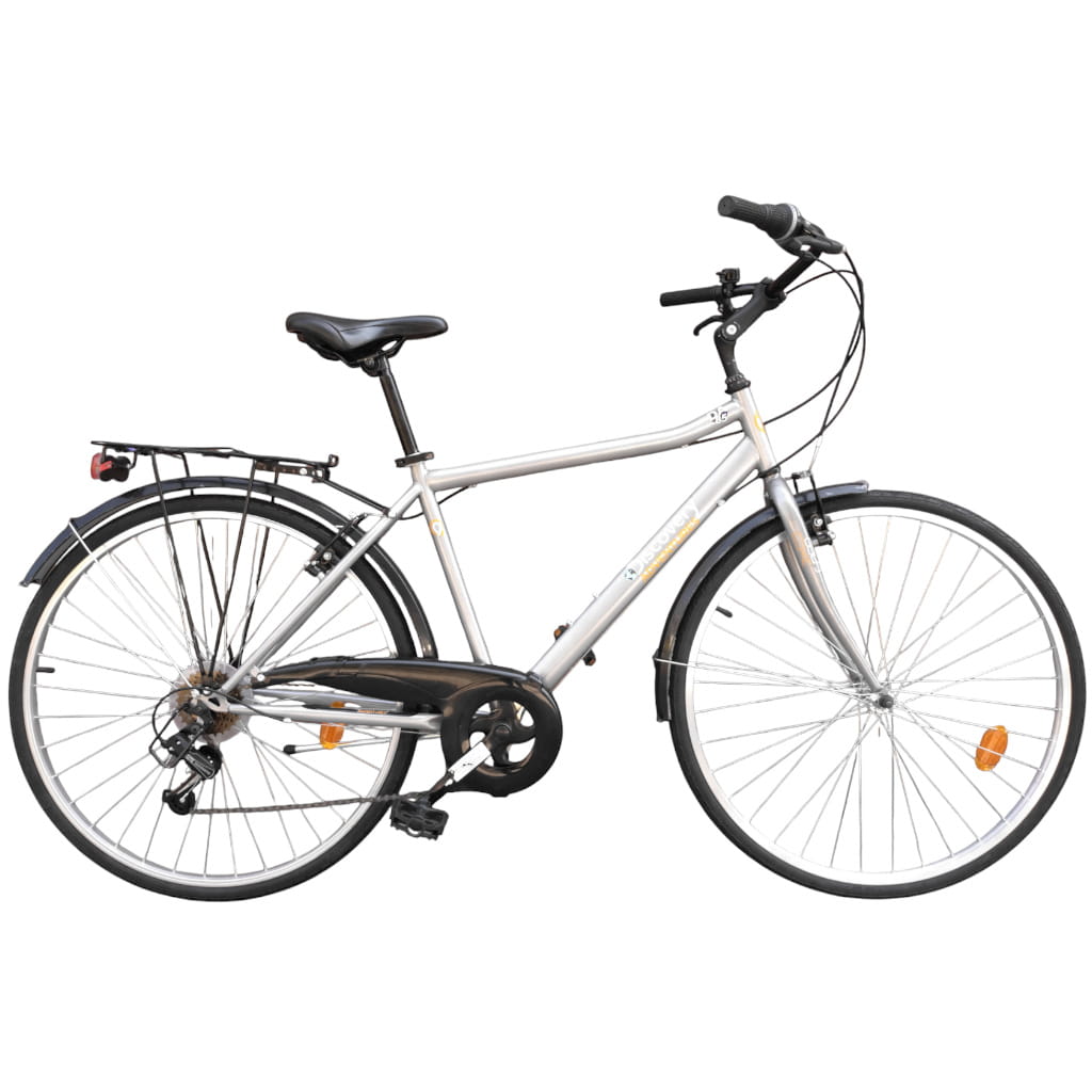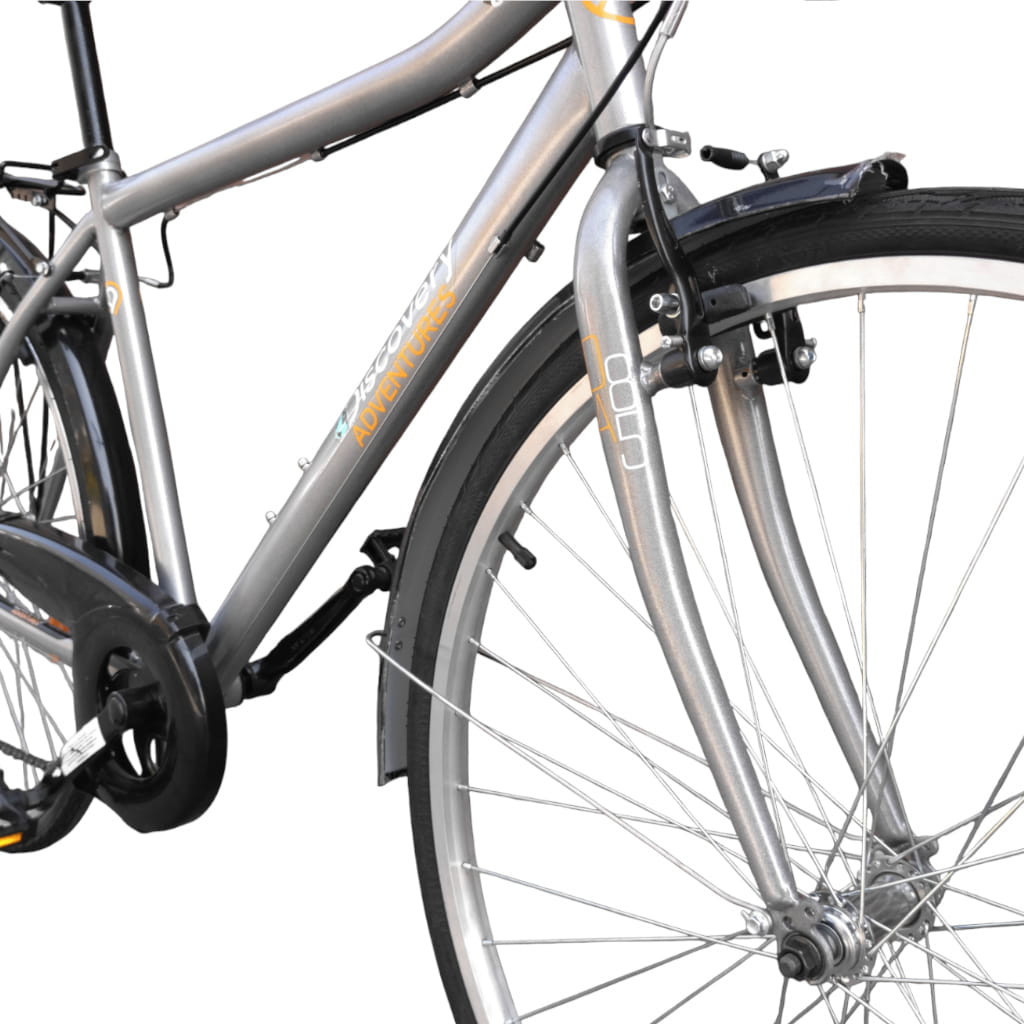 Odkryj komfort jazdy na rowerze Discovery 28" z stalową ramą, 6 biegami Shimano i stalowym bagażnikiem o nośności 25kg.