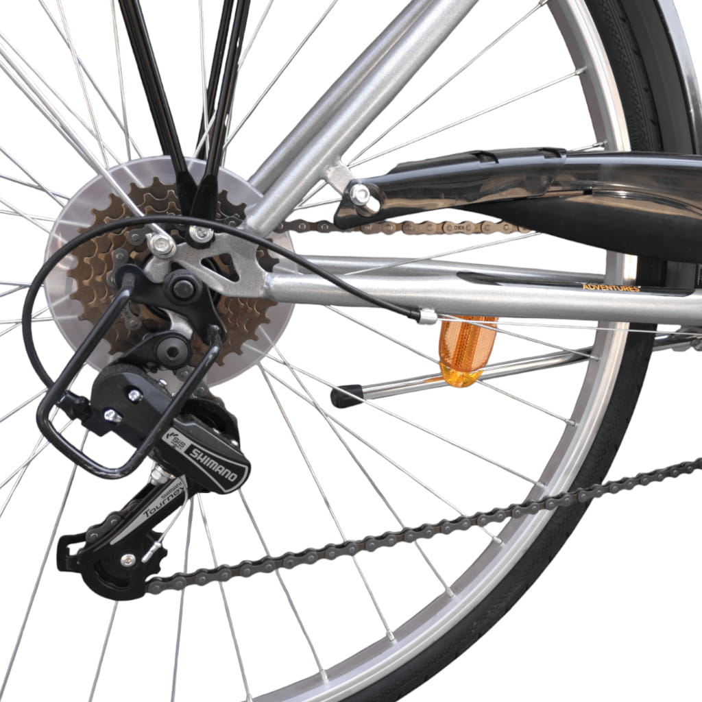 Dzięki stalowej ramie i 6-biegowej przekładni Shimano TY21, rower sprawdzi się zarówno na miejskich ścieżkach, jak i na mniej utwardzonych drogach. Wyposażony w stalowe hamulce typu V-brake, zapewnia skuteczne hamowanie w różnych warunkach.