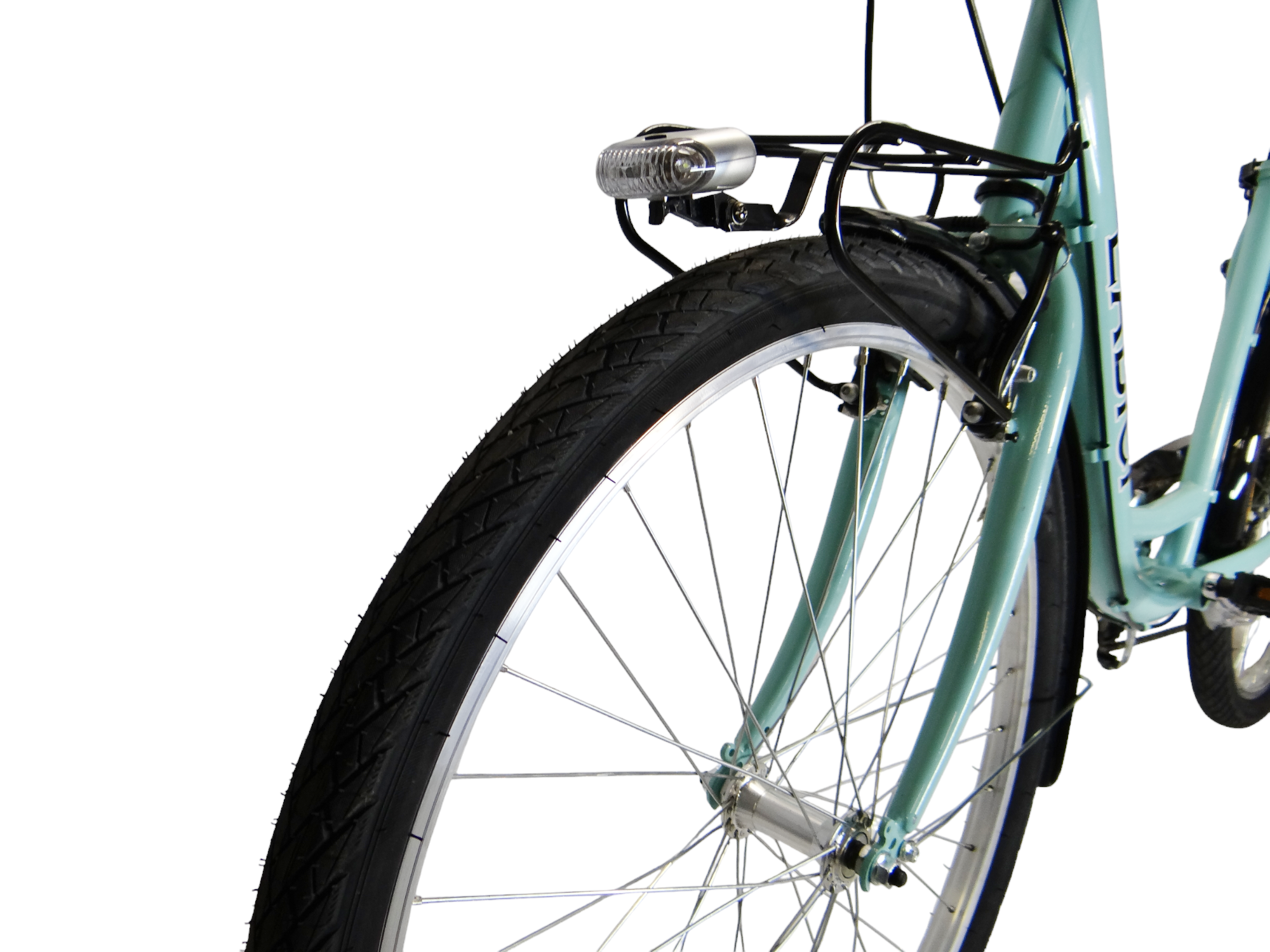 Stylowy, kolor ramy w odcieniu akwamarynu przyciąga wzrok, a ergonomiczne i duże siodełko zapewnia wygodę nawet podczas dłuższych tras. To rower, który nie tylko spełnia swoje funkcje, ale także dodaje charakteru Twoim codziennym podróżom.