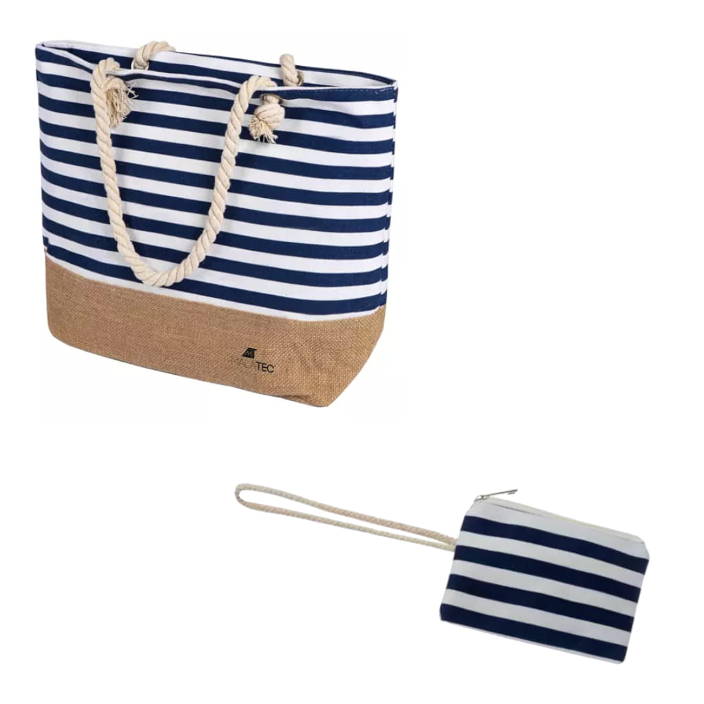 Elegancki i ponadczasowy design sprawia, że torba plażowa będzie stylowym dodatkiem do letniego stroju. Dodatkowo do torby dodawana jest portmonetka na pieniądze, w takim samym stylu kolorystycznym.