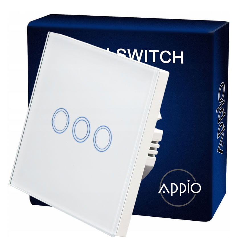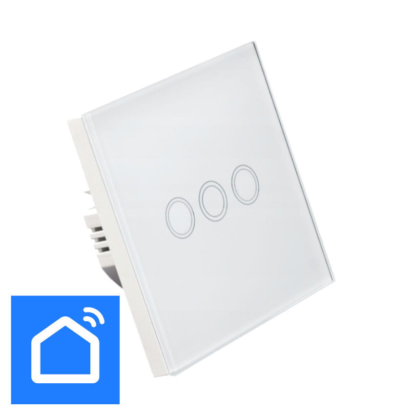 Włącznik dotykowy szklany biały potrójny z WiFi