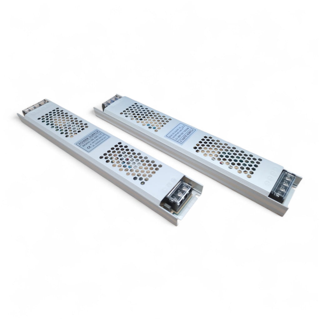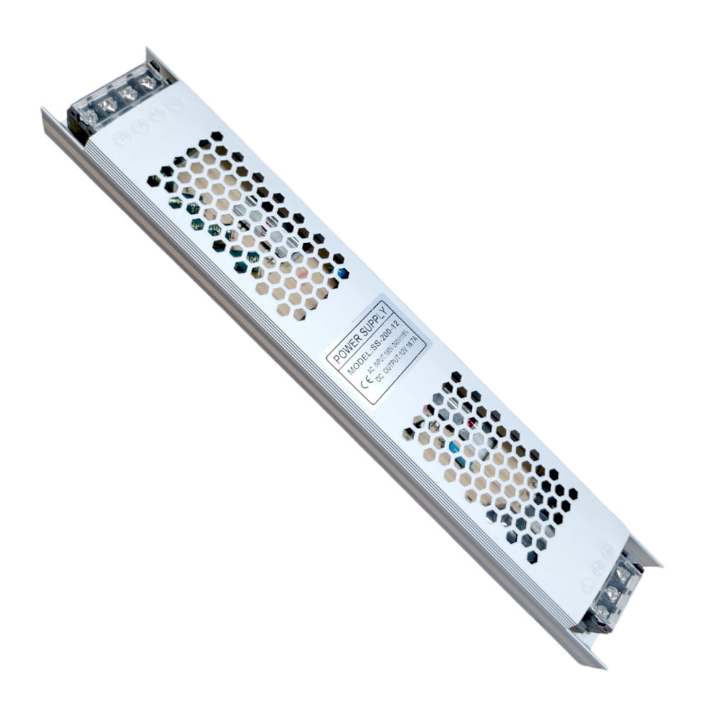 Zasilacz montażowy 12V zamknięty w spłaszczonej i wydłużonej obudowie typu flat/ultra slim. Przeznaczony przede wszystkim do zasilania oświetlenia LED 12V, sprawdzi się jednak w zasilaniu innych urządzeń wymagających napięcia stałego 12V. Moc maksymalna wynosi 200W.